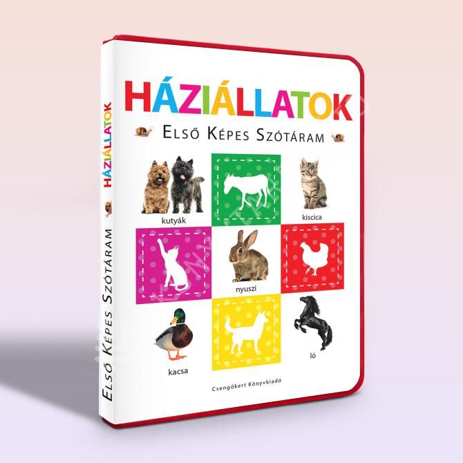 Tudod, milyen hangot ad a boci vagy a malac? A Háziállatok képes szótár játékosan ismerteti meg a gyerekeket a legkedveltebb háziállatokkal. Kísérjük dalokkal, mondókákkal és állathangokkal a képes bemutatót, így könnyedén bővül a szókincs, és a kicsik szívesen fedezik fel az állatokat és azok jellemzőit. Az iskoláskor előtti időszak egyik legkedveltebb témája a háziállat-soroló, attól függetlenül, hol, milyen környezetben is él a kisgyermek. Az első mondókák, dalok legtöbbjének főszereplője a csibe, kiskacsa, malac, boci, és társaik. A szókincset játékosan bővíteni tudjuk, ha az állatok neveit együtt megtanuljuk, és mesélünk jellemzőikről. Utánozhatjuk az állathangokat, vagy társíthatunk hozzájuk dalokat, kiszámolókat. Sorozatunk négy nagy témába rendezi össze az iskoláskor előtti gyermekeknek a sokszínű világ kifejezéseit, hogy ezáltal játékosan gyarapodhasson szókincse, megalapozhassa készségeit és képességeit a további tanuláshoz. A fotókon keresztül élőhelyük szerint mutatja be az állatvilágot (Háziállatok, A vadonban, Vízi világ, Dzsungel, Állatkölykök); a kisgyerek első tapasztalati dolgait: testét, az ennivalóit, játékait, a házban levő dolgokat, fogalmakat (Kicsik világa, Mi micsoda?, Otthonunk). Fejlesztő jellegű a Színek, Számok, Formák, Betűk, Állatábécé című kötetek, az alapfogalmakkal megágyazva az írás és olvasás gyakorlatának. A Járművek téma pedig a mindenféle autókra és munkagépekre kívácsi kicsik érdeklődését kívánja kielégíteni.