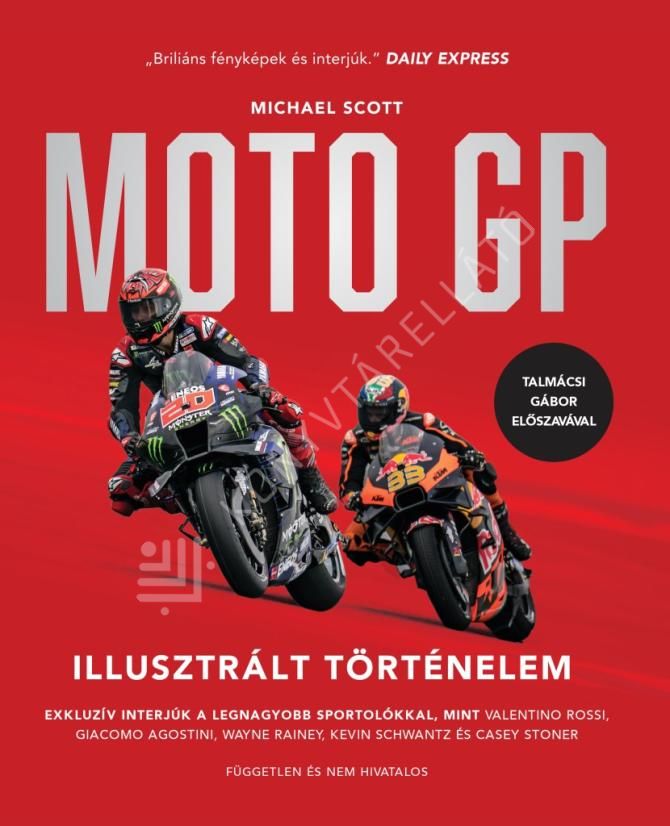 A magyar kiadás alapja a 2023-ra frissített, átdogozott hetedik kiadás, több mint 150 lenyűgöző fényképpel. A Gyorsaságimotoros-világbajnokság versenyének hiteles képes története 1949-től napjainkig. A MotoGP-t több mint 200 országban követi figyelemmel mintegy 420 millió tévénéző évről évre. Fejezetenként minden korszakot a fontosabb mérföldkövekkel, eseményekkel, műszaki fejlesztésekkel és a motorversenyzés olyan kiemelkedő alakjainak interjúival vesz górcső alá, mint John Surtees, Giacomo Agostini, Kenny Roberts, Valentino Rossi, vagy épp Casey Stoner. Exkluzív személyes betekintést és beszámolókat találhatunk arról, hogy milyen 320 km/órás sebességgel versenyezni. A MotoGP Illusztrált Történelem egy egyedülálló könyv, amely zseniálisan közvetíti ezen lenyűgöző sport felpezsdítő szellemét. A könyv magyar megjelenése a 2025-ben 33 év után újra Magyarországra látogató, a Balaton Park Circuiten rendezett MotoGP futamot – Magyar Nagydíjat ünnepli. Ennek örömére a magyar kiadáshoz előszót írt Michael Scott, a szerző, Dominique Hebrard az FIM CTI műszaki vezetője és FIM MotoGP műszaki képviselője, valamint Talmácsi Gábor 2007-es MotoGP 125 cm³-es kategória világbajnoka. Emellett bemutatkozik 8 tehetséges és egyre eredményesebb magyar gyorsasági motorversenyző, köztük Rossi Moor, Varga Tibor Erik, Farkas Kevin, Kecskés Bence, Kovács Bálint, Görbe Soma, Lukács Tamás és Számadó Máté. A könyvet szerkesztői megjegyzések tarkítják, melyek az egyes eseményekhez, évszámokhoz magyar vonatkozásokat is behoznak, illetve segítik a jobb megértést. Ajánljuk a könyvet minden motorosnak, és motorsportrajongónak!